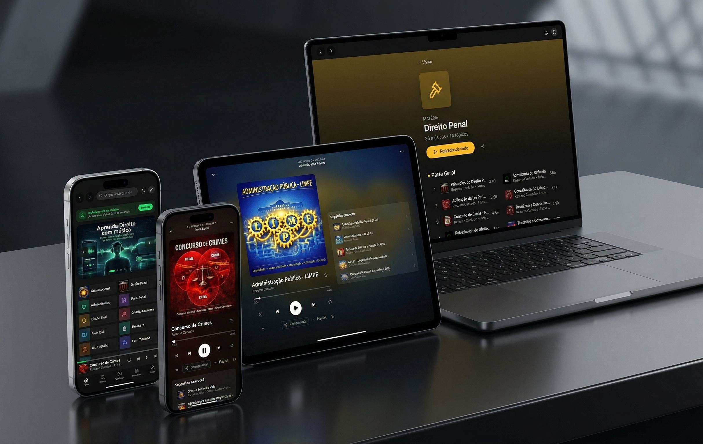 O Resumo Cantado transforma o Direito em músicas que grudam na memória — e você estuda enquanto vive: no trânsito, na academia, no chuveiro